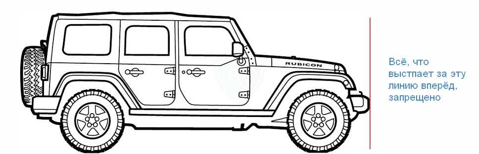 Сложно про проекцию? На самом деле, просто. На рисунке ниже показано, какие изменения в конструкции не должны выступать, и очевидно, что к ним и относится кенгурятник.