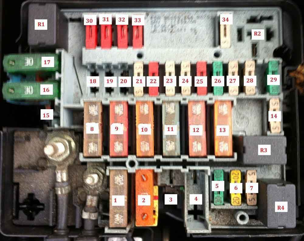 Данный блок закрыт защитной крышкой и расположен не далеко от аккумумлятора.