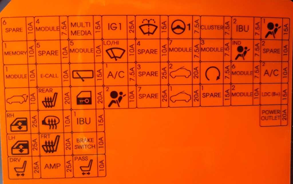 | 3 | 10А Модуль активной воздушной заслонки, диагностический разъем, комбинация приборов, переключатель аварийной сигнализации, блок реле ICM (интегральный модуль) (реле складывания/раскладывания наружных зеркал), автоматический датчик освещенности и фотодатчик, выключатель консоли, наружная ручка интеллектуального ключа со стороны водителя/пассажира |