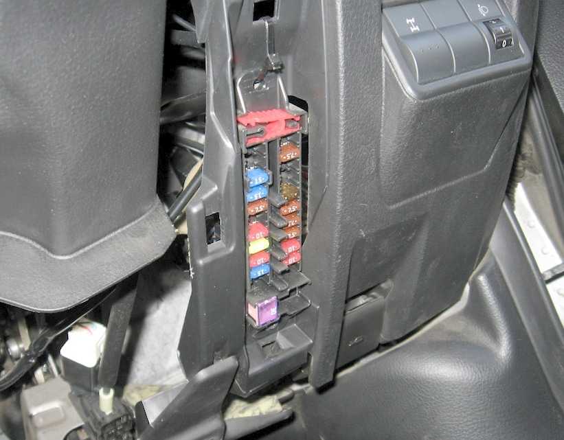 Монтажный блок предохранителей в салоне Mazda Demio, Mazda Verasa.