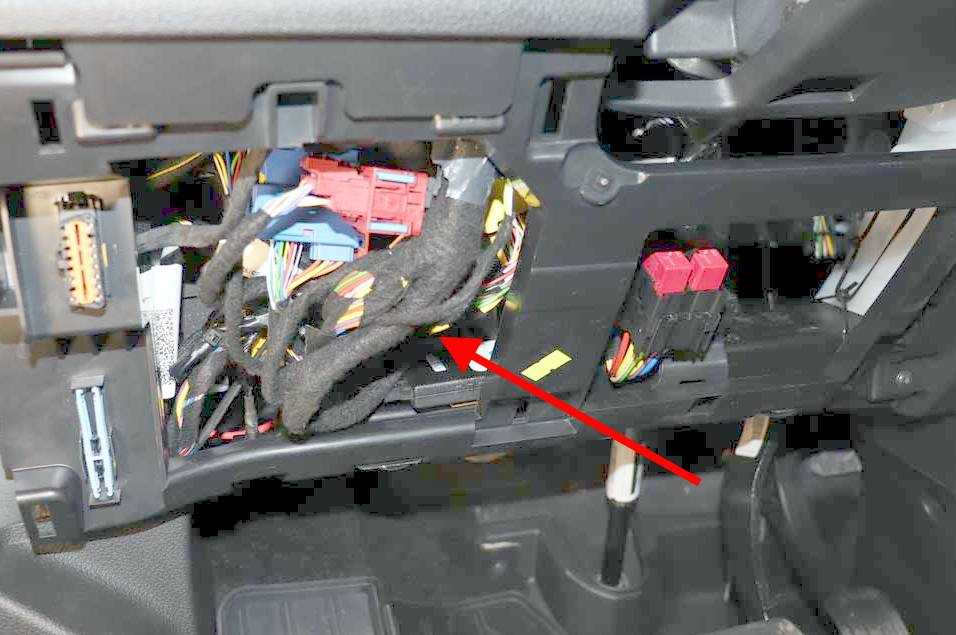 Он расположен под панелью приборов. Для доступа откройте крышку отделения для хранения мелких предметов до конца, не надавливая на нее. Далее потяните крышку вправо, чтобы открыть ее до конца. После снимите защиту между предохранителями и крышкой.