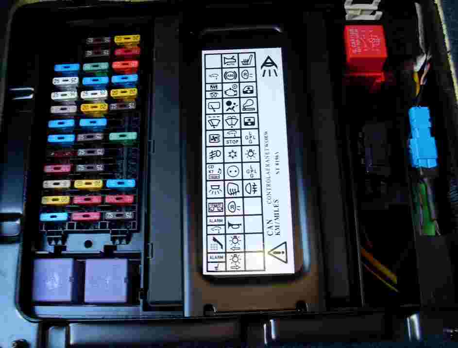 - F87 7,5 A Фонари заднего хода, датчик воды в дизтопливе, расходомер, катушки реле T02, T05, T14, T17 и T19 (кроме 1,3 HDi) / 5 A Фонари заднего хода, датчик воды в дизельном топливе, расходомер, катушки реле T02, T05, T14, T17 и T19, датчик заряда батареи (1,3 HDi).