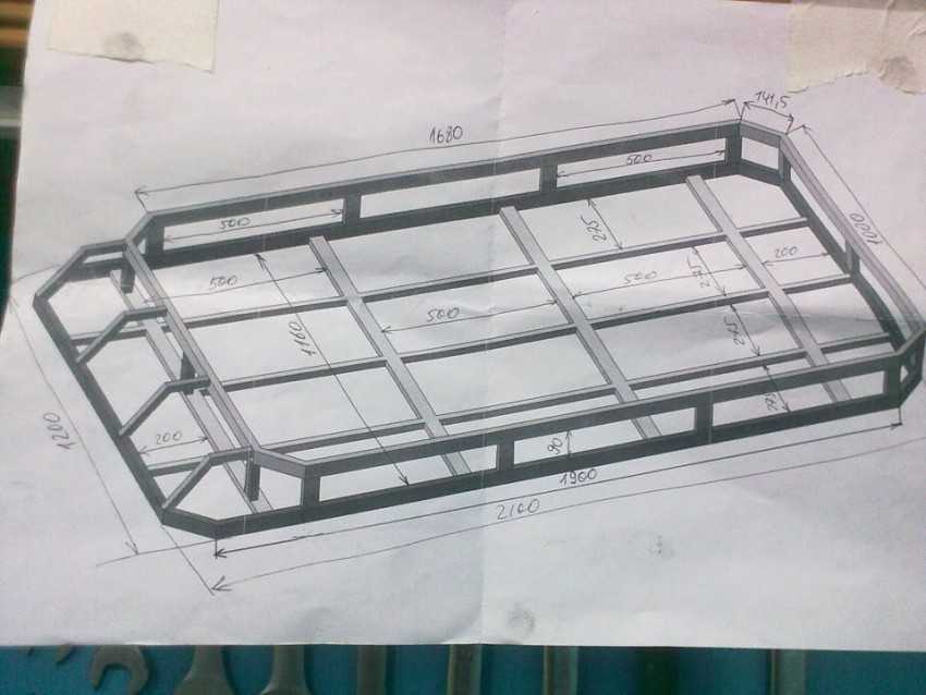 Окончание подготовительных работ должно ознаменоваться не только составлением подробного чертежа, но и отметкой на нем всех полученных в ходе измерения данных. Своими руками и головой в таком случае придется поработать немало. Ведь только ответственный подход к осуществлению поставленной задачи позволит изготовить багажник такой конструкции и крепежа, который будет выдерживать колоссальные нагрузки.