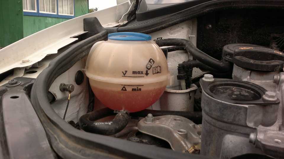 Необходимый уровень антифриза можно узнать по меткам на бачке системы охлаждения