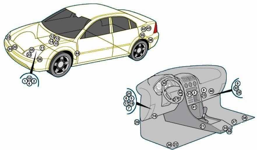 Нашим заказчиком остаются электронные схемы Focus 1 (не считая цепи питания стартера), защищенные от перегрузки предохранителями, установленными в 2 монтажных блоках. Основной блок расположен под незнакомой панелью драйвера устройства, а дополнительный блок. под капотом. Крупные потребители электроэнергии (фары, электрические вентиляторы радиаторных двигателей и т. Д.) Подключаются через реле, установленные в тех же блоках.