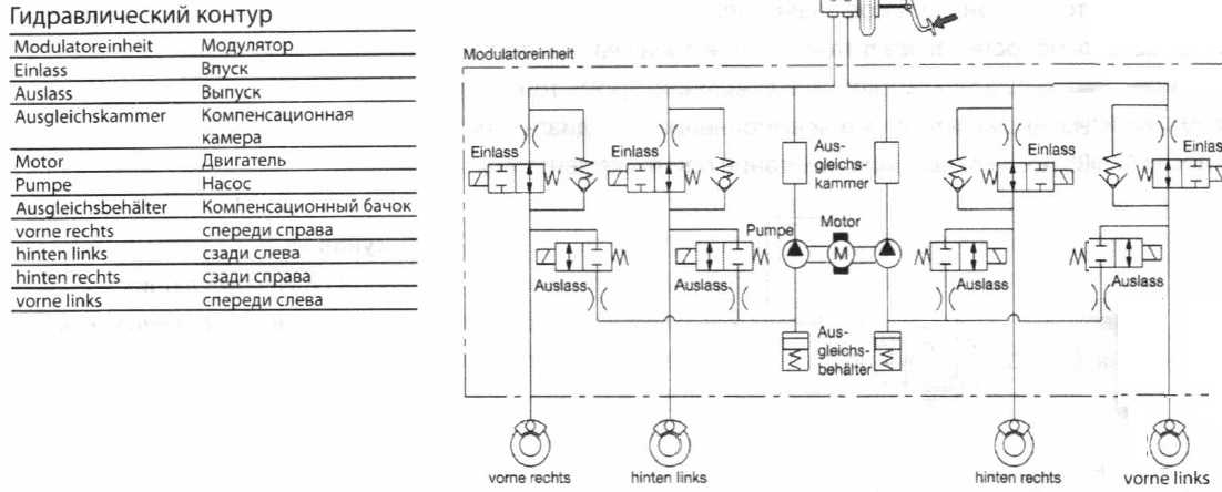 На каждом из этих выходов гидравлического блока АБС стоит клапан, который открыт в первоначальном состоянии.