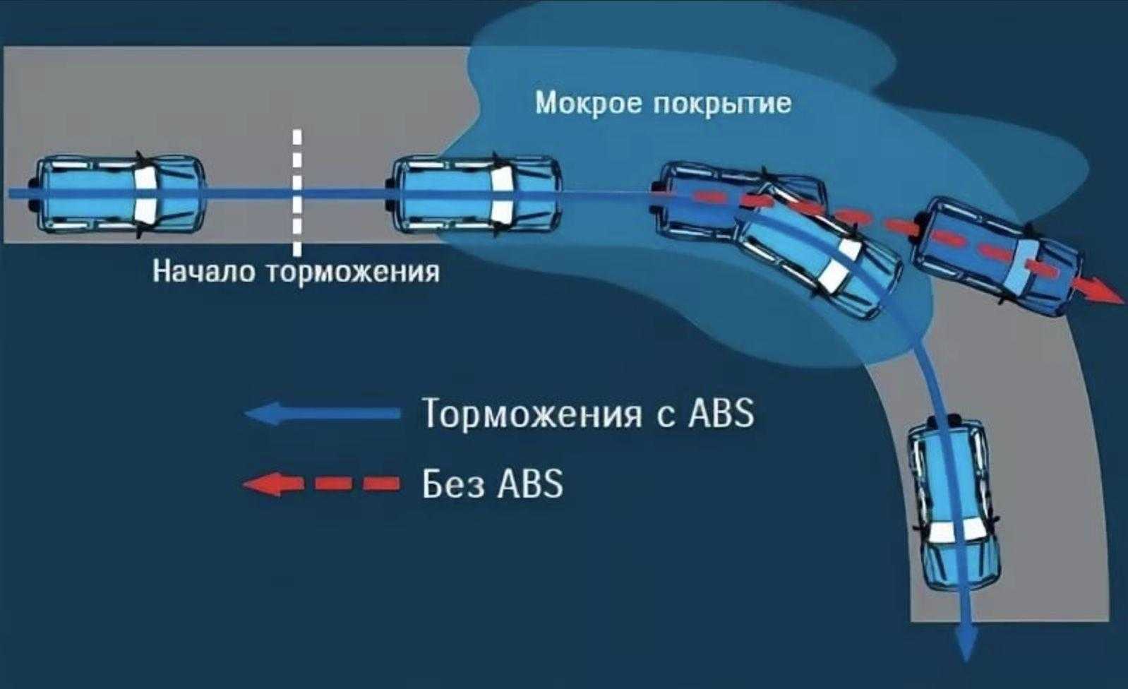 Ведь при движении юзом машина становится неуправляемой и не реагирует на рулевое управление. АБС же позволяет избежать этого и сохраняет у водителя возможность управления автомобилем.