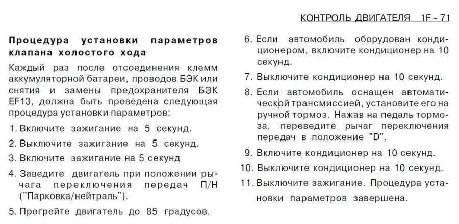 Как правильно сбросить регулятор, описано в инструкции к автомобилю, но так как никто ее не читает, то в итоге получается, что знают об этом единицы. Инструкция по сбросу счетчика РХХ имеет следующий вид: