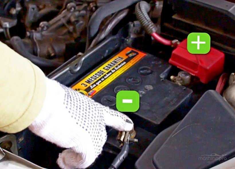 - снять клемму с аккумулятора с отрицательной полярностью, при этом необходимо расположить отрицательный провод с разъемом таким образом, чтобы он не болтался, не мешал дальнейшим действиям и не мог возвратиться на прежнее место;
