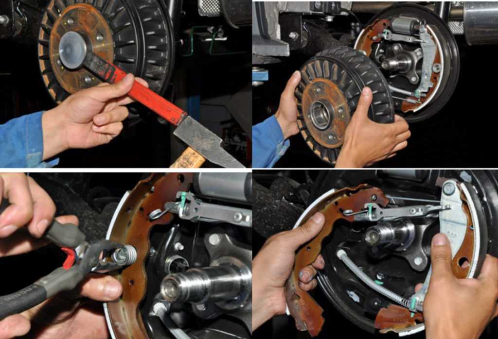 А вот если сзади установлен барабанный механизм, замена задних тормозных колодок более трудоемкая, тем дисковых.