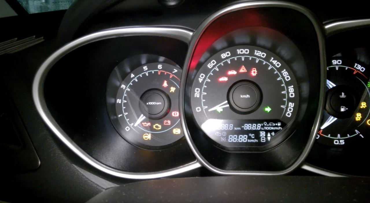 Тахометр. Благодаря этому прибору водитель знает, какова частота работы коленвала, то есть с какой частотой оборотов работает двигатель. Нельзя допускать, чтобы стрелка прибора перемещалась в красную зону, поскольку это может привести к повреждению силового агрегата. Если вы давите педаль газа в пол, при этом частота оборотов превысила 6200 в минуту, подача горючего будет ограничена. Также специалисты рекомендуют не допускать работу мотора в опасном режиме, когда частота оборотов составляет менее 800 в минуту.