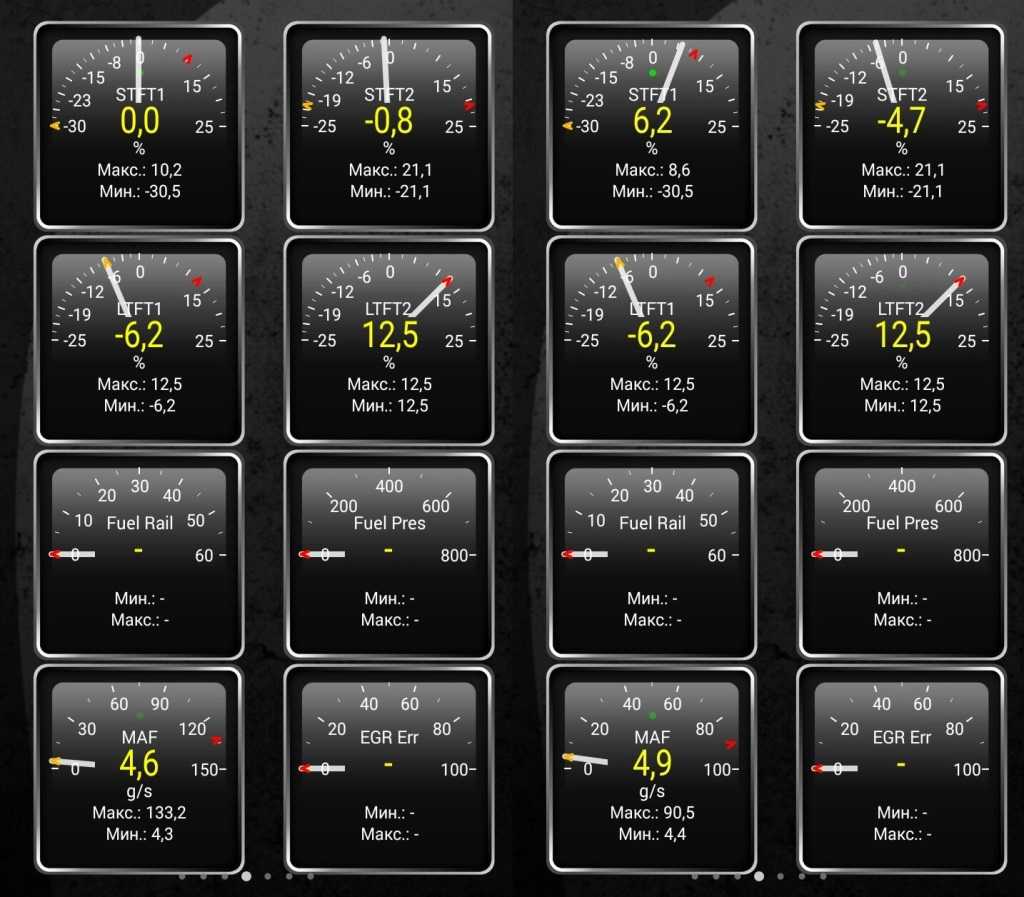 Сервисное ПО позволяет отслеживать режимы при езде. Среди доступных: температура, обороты, положение дросселя, качество смесеобразование и другие.