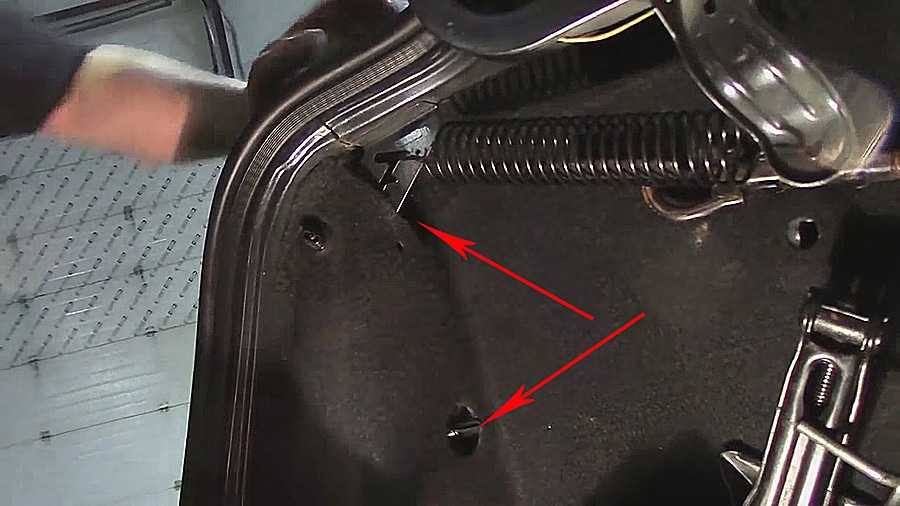 - В багажнике отделяем и убираем обивку (см. фото ниже);