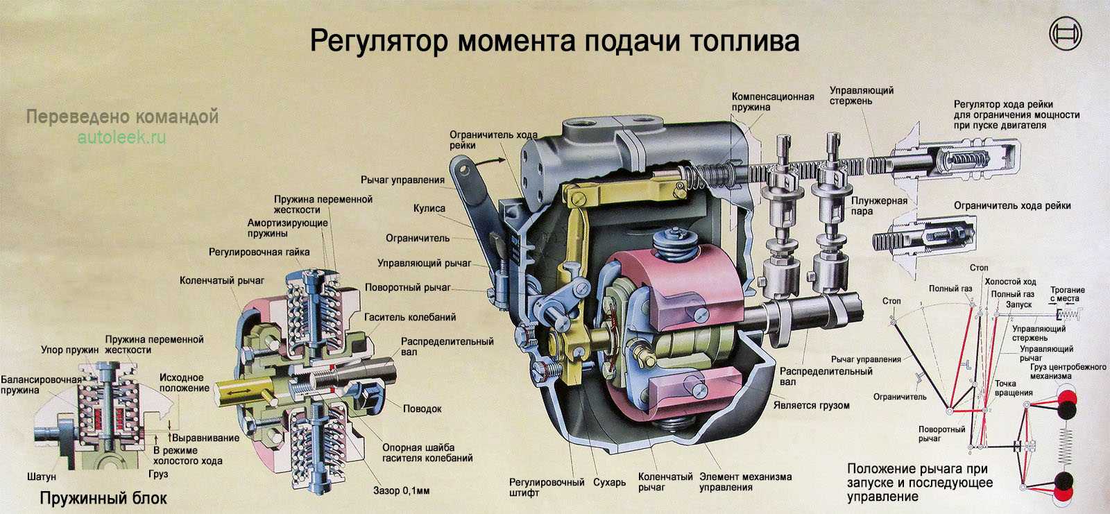 Как уже отмечено, ТНВД помимо сжатия обеспечивает еще и соблюдение момента впрыска. Причем в рядном типе это организовано очень просто – плунжерная пара срабатывает точно на конце такта сжатия. Но здесь имеется очень важный момент – чем крупнее порция впрыскиваемого топлива, тем больше времени нужно, чтобы его подать. То есть, при работе мотора под нагрузкой, впрыск должен начаться раньше.
