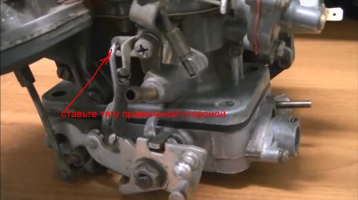 А также проверим правильность установки тяги к рычагу на оси дроссельной заслонки первый камеры.