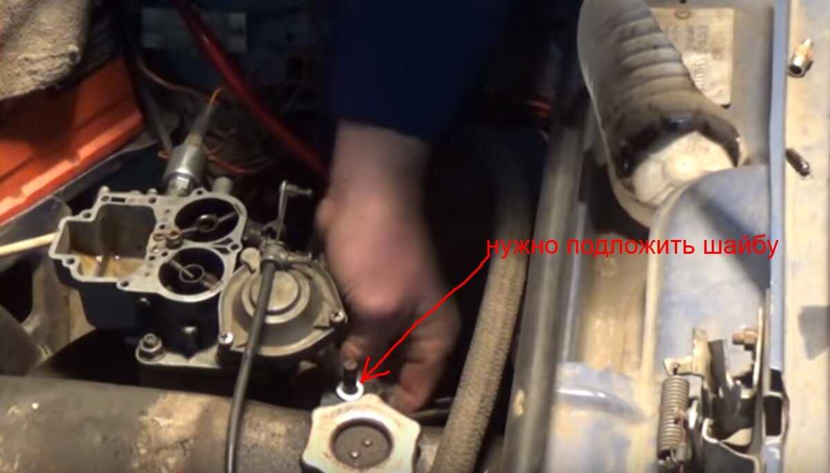 На рычаге тяги, которая идёт от педали акселератора, должна быть шайба, обязательно проверьте, если отсутствует шайба, тогда подложите. Все детали надо собирать, как задумано изначально и неоднократно испытано на практике.