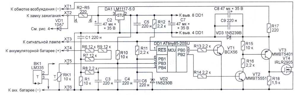 - Контроль напряжения на аккумуляторах, а не на выходе генератора. Позволяет точнее контролировать состояние и управлять процессом зарядки.