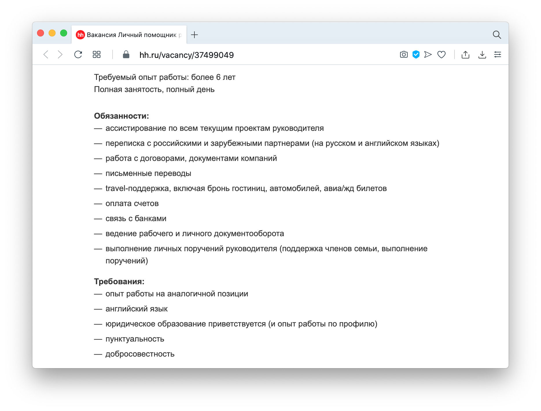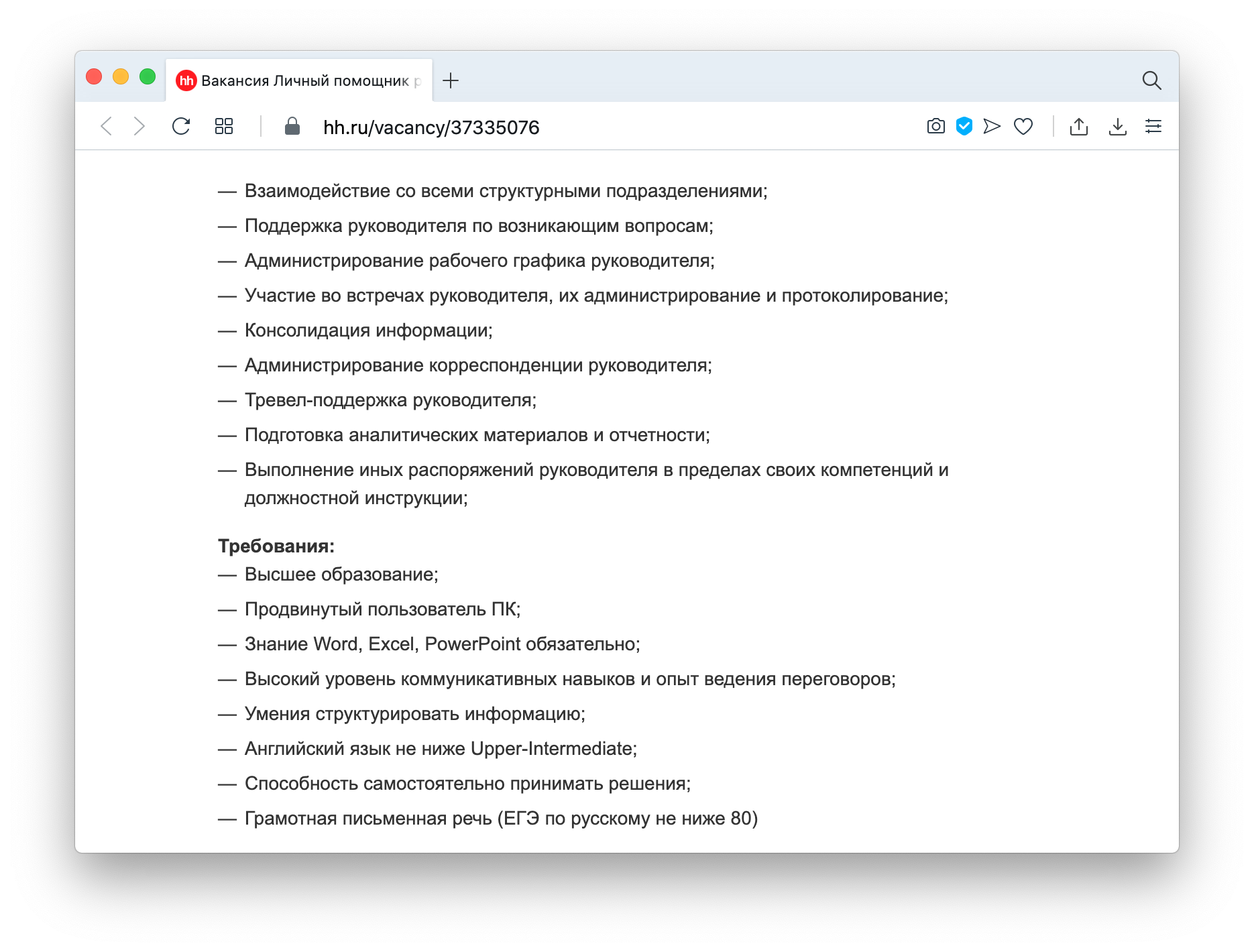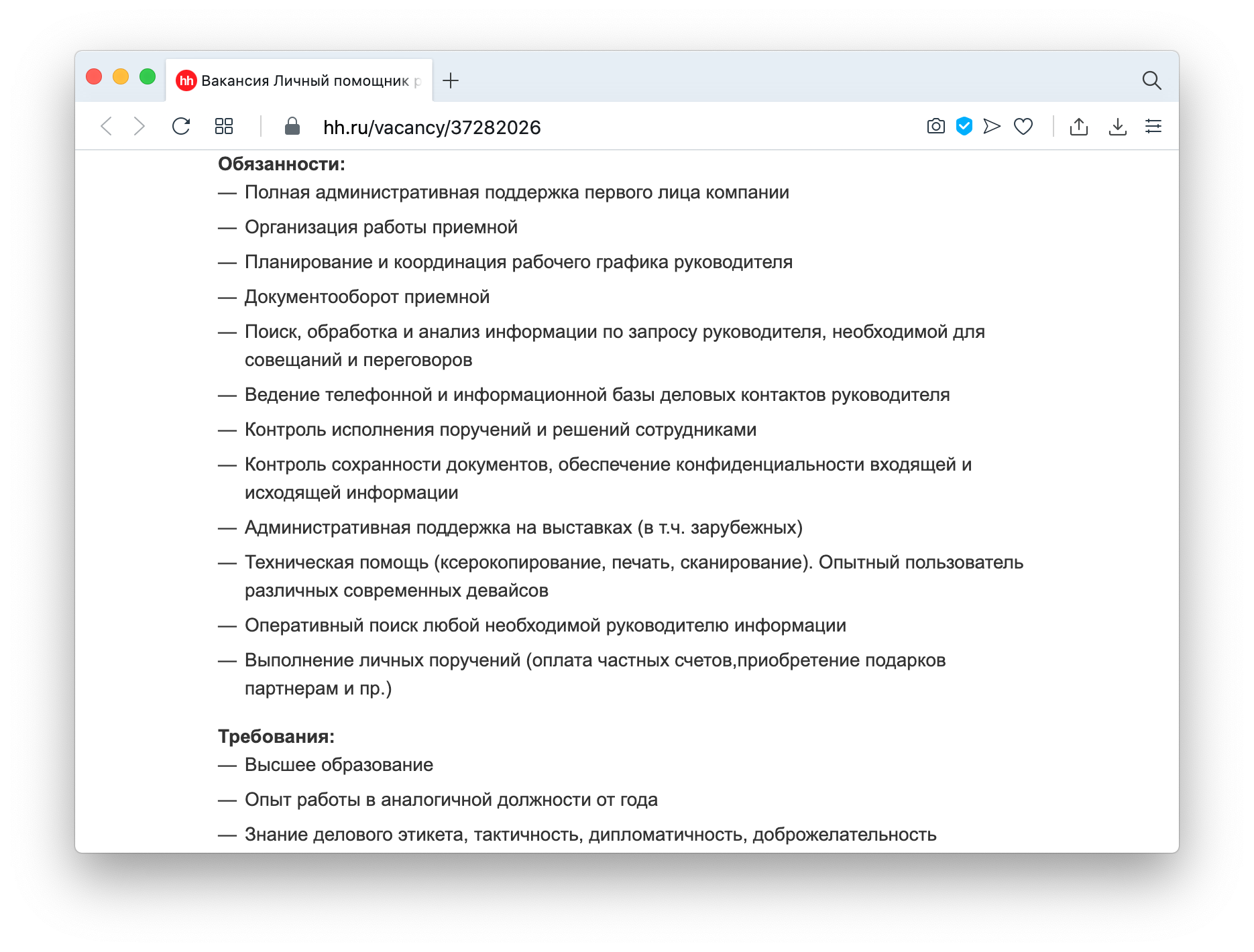 Обязанностей много, они отличаются: в одних объявлениях просят заказывать цветы и забирать детей из садика, в других — составлять финансовую отчетность для холдинга, в третьих — делать и то, и то.