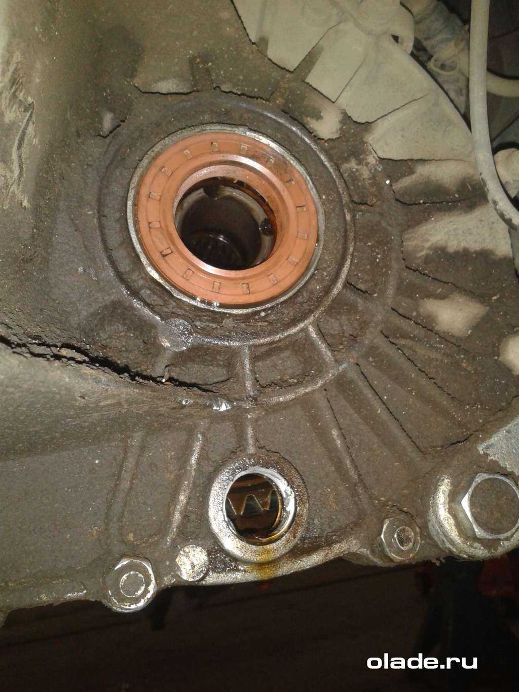 Масло через сальник у меня не капало, а только подмачивало вал и окружающие детали. Коробка работала хорошо, уровень в норме, цвет и запах масло в норме. Так что совет — если только подмачивает вал и за ночь не капает, то не спешите с заменой сальника. Можно еще ездить, но нужно уже готовиться и в удобное время менять.