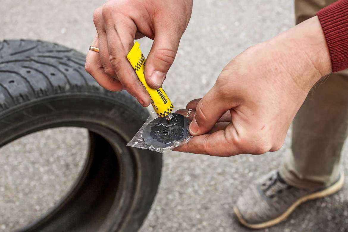 Первый вариант предполагает использовать сам застрявший предмет в виде самореза в качестве приспособления для ремонта. Он выкручивается из шины, обрабатывается герметиком и вкручивается обратно. В зависимости от типа герметика, на застывание может уйти до 3-4 часов. После этого можно подкачать немного колесо и отправиться поездку. За счет герметика шляпка самореза не провалится в резину, а также снизится вероятность ее поломки. Насколько длительным окажется эффект, спрогнозировать сложно.