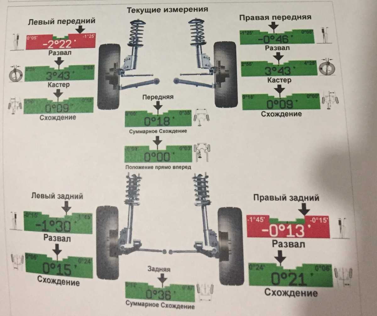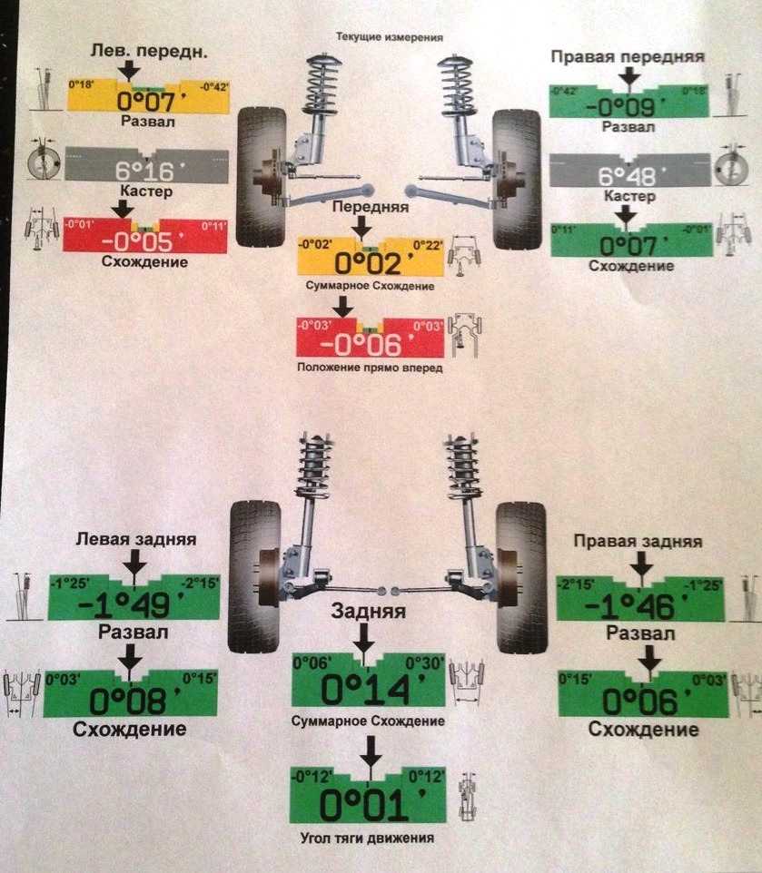 Обязательно перед регулировкой развала-схождения проверяйте давление в покрышках и убедитесь в том, что случано не забыли в багажнике пару мешков картошки или цемента ![]()