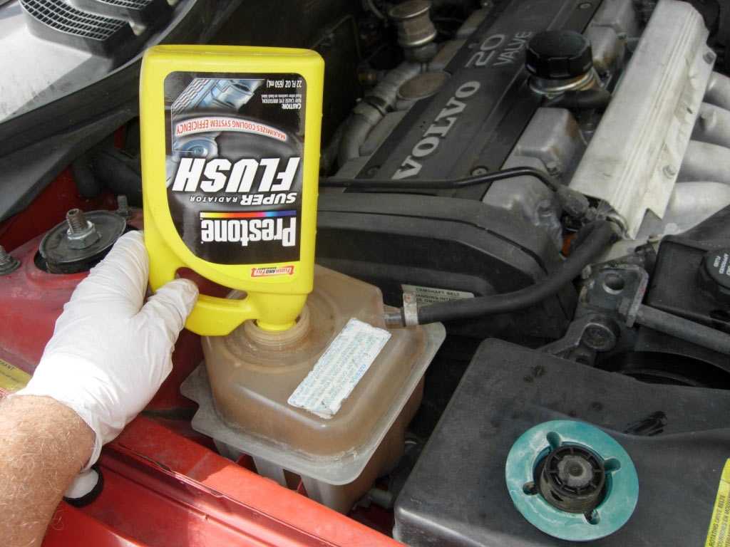 Процесс заливки очистителя PRESTONE Super Radiator Flush в расширительный бачок