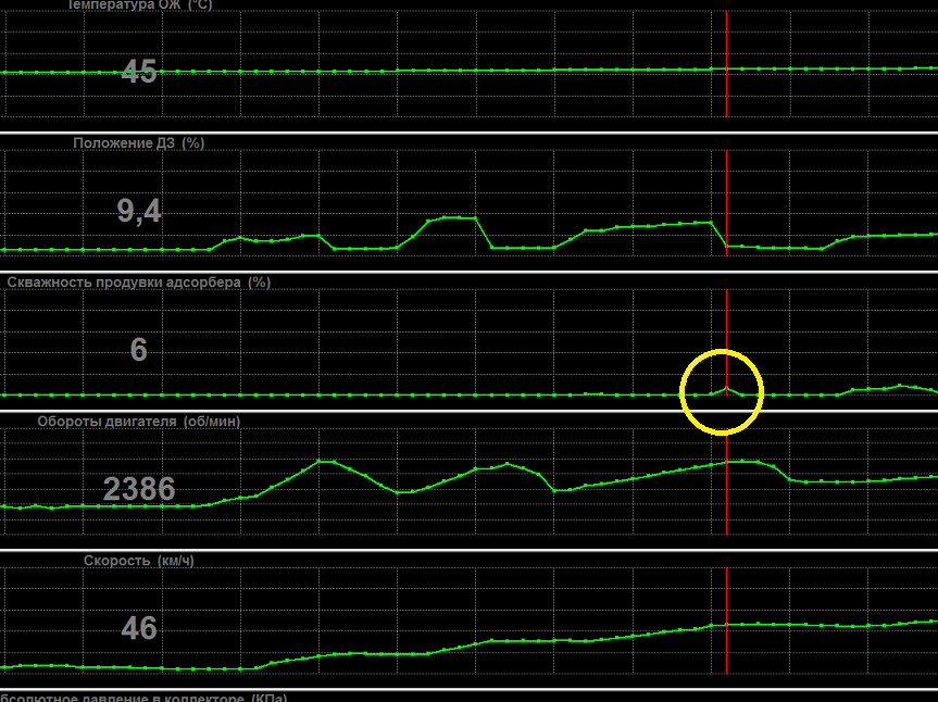 За всю поездку это только первый сигнал ЭБУ на продувку, равный всего лишь 6%