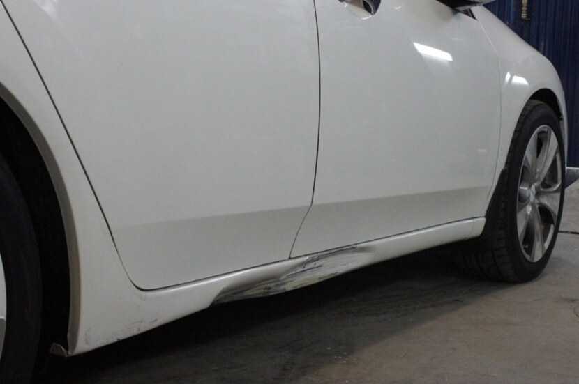 - Если удалить вмятины таким образом не получается, то этот кузовной элемент ремонтируется с помощью сварки. В боковой части порога вырезается отверстие в виде прямоугольника. Туда вставляется наковаленка и с помощью рихтовочного инструмента аккуратно выправляются вмятины.