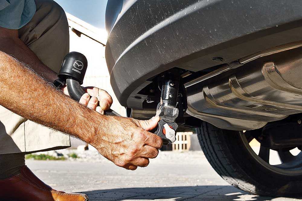 Существует мнение, что фаркоп на Mazda CX 5 защищает во время ДТП, так как он может принять силу удара при наезде сзади. Но, это скорее минус: если удар приходится на устройство, а не в бампер, повреждения будут еще серьезнее. Именно поэтому, во многих странах мира, движение с фаркопом без прицепа запрещено.