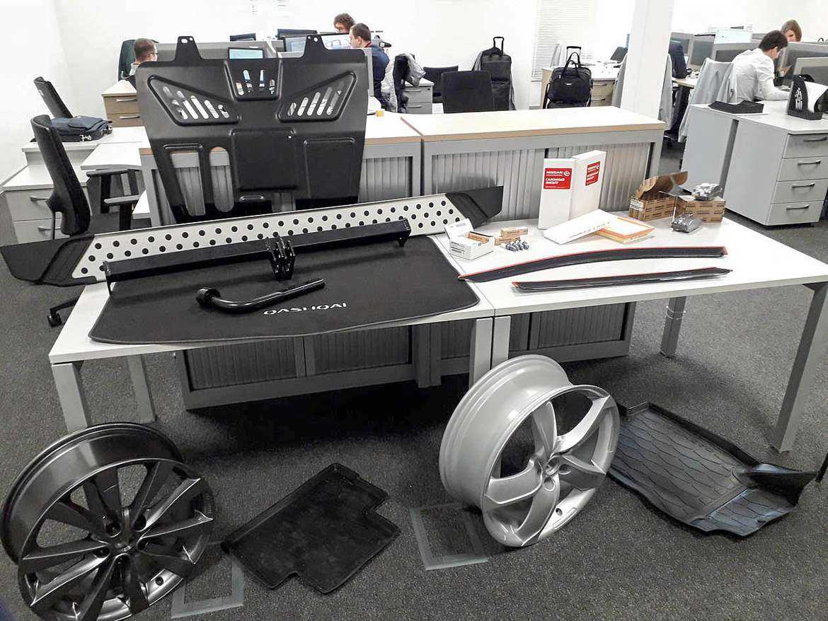 Еще одна часть технического центра занимается вопросами, связанными с улучшением эксплуатационных характеристик автомобилей Nissan уже после покупки. Основных направлений три: первое — это проектирование и внедрение всевозможных автоаксессуаров, то есть компонентов для улучшения функциональности автомобиля, его защиты или безопасности. Например, этим отделом внедрена локализованная защита картера, прошедшая все необходимые краш-тесты, имеющая все необходимые вентиляционные отверстия и получившая все омологационные разрешения.
