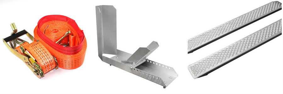 Чтобы погрузить и надежно зафиксировать ваш байк на платформе, вам понадобятся стяжные ремни с надежными пряжками и зубчатыми захватами, упор для колес, мягкие петли, а также рампа, сходни, если у прицепа нет соответствующего оборудования. Итак, порядок действий.