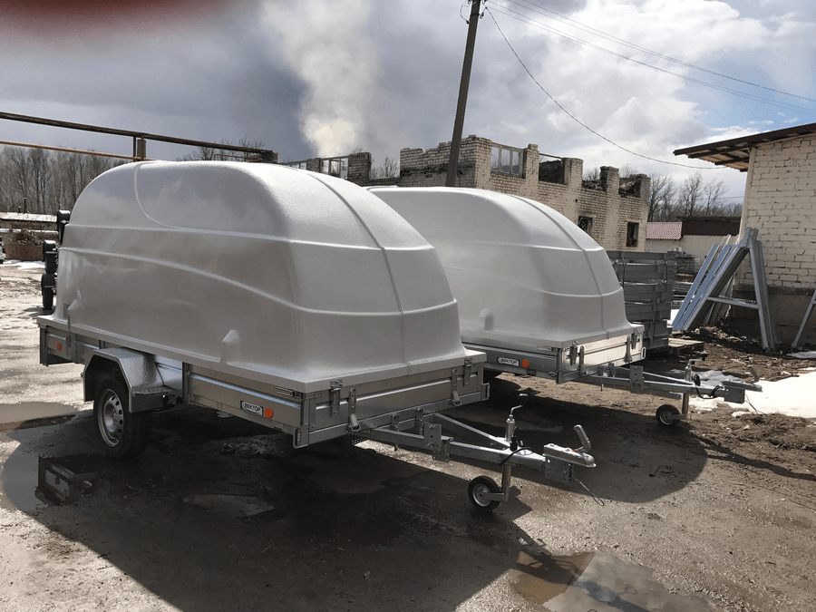 - Прицепы-цистерны, прицепы-фургоны и передвижные павильоны. Огромным фактором здесь является надежность и безопасность при перевозке. Используют для перемещения как пищевой продукции, так и непищевой.