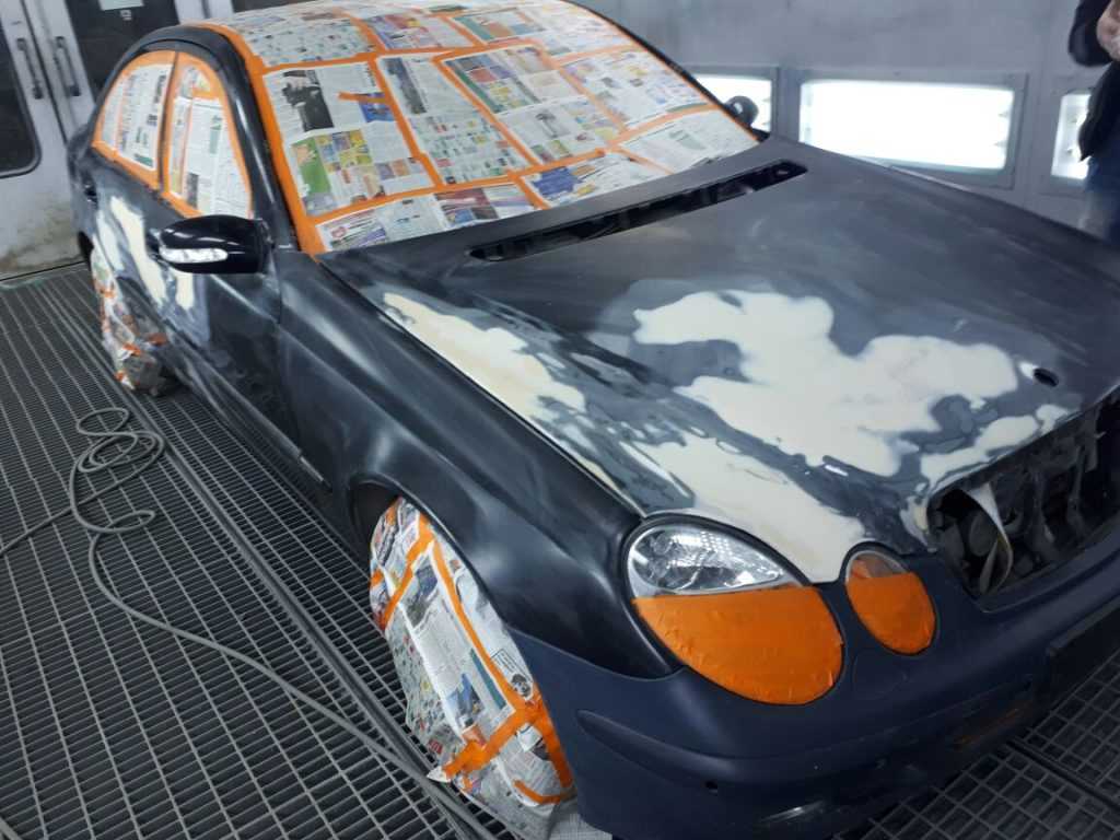 - Грунтовка, обработка поверхности автомобиля наждачной бумагой