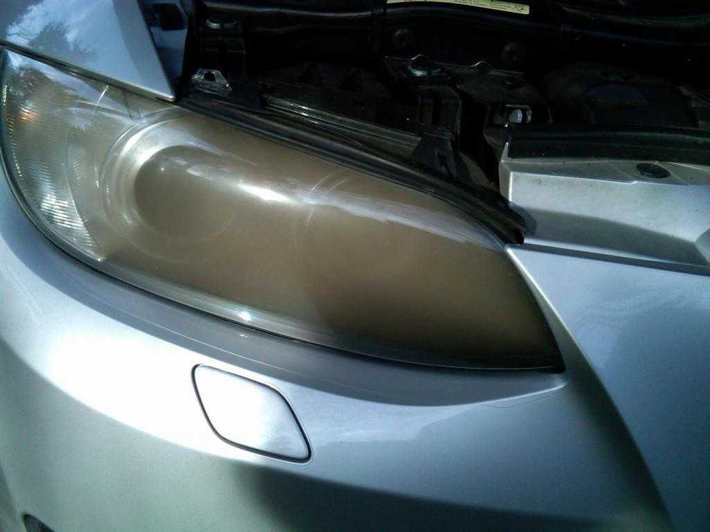 Эта процедура касается всех автомобилей, например, так можно почистить фару «Мазды-3» изнутри, не разбирая ее. После того как отверстия герметично закрыты, нужно тщательно потрясти фару. После этой операции жидкость обычно приобретает желтый цвет.